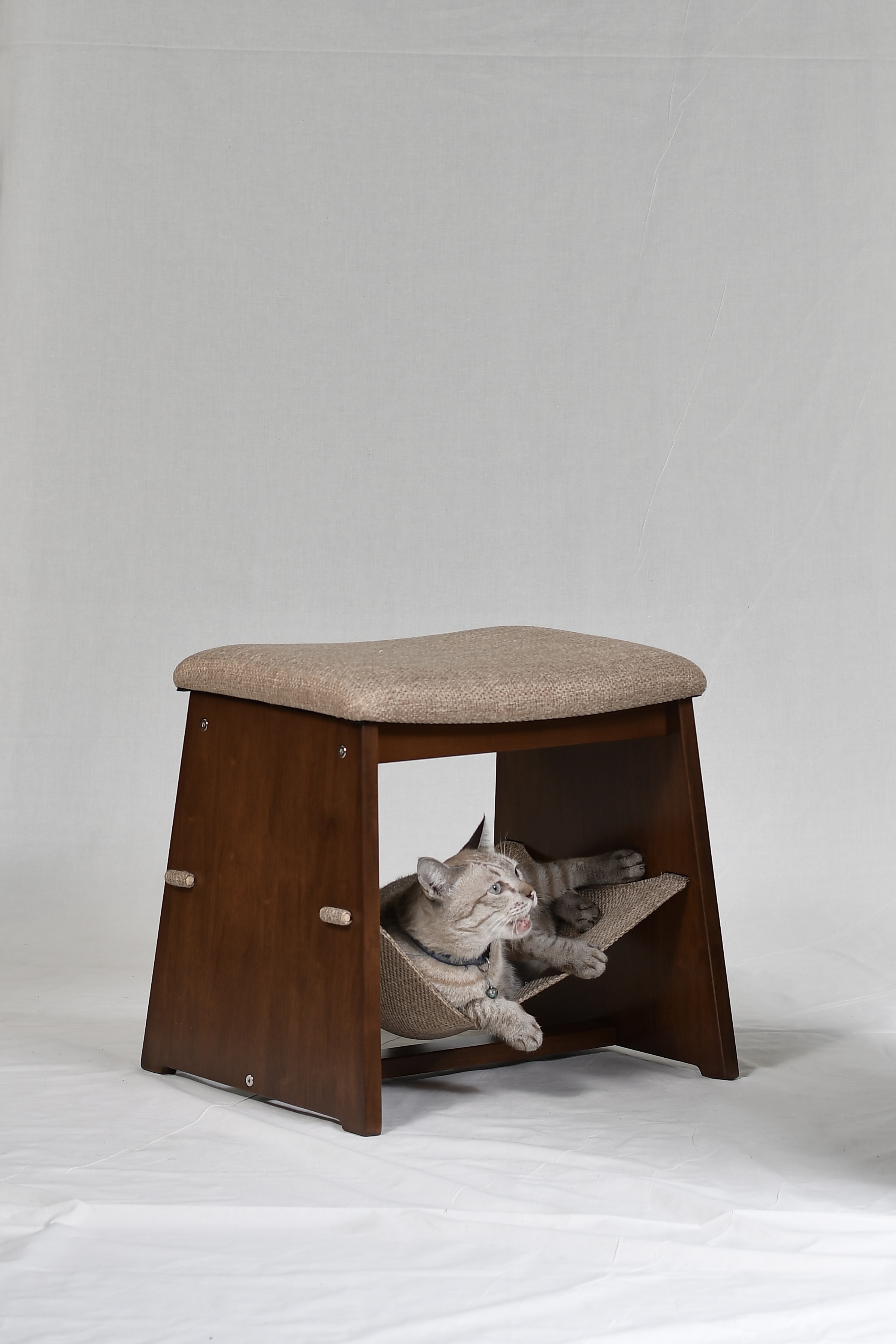 วัสดุโครงไม้จริง แข็งแรง ทนทาน ผ้ารองนุ่ม ถอดซักได้ เหมาะกับเป็นที่นอนน้องแมว หลับสบาย